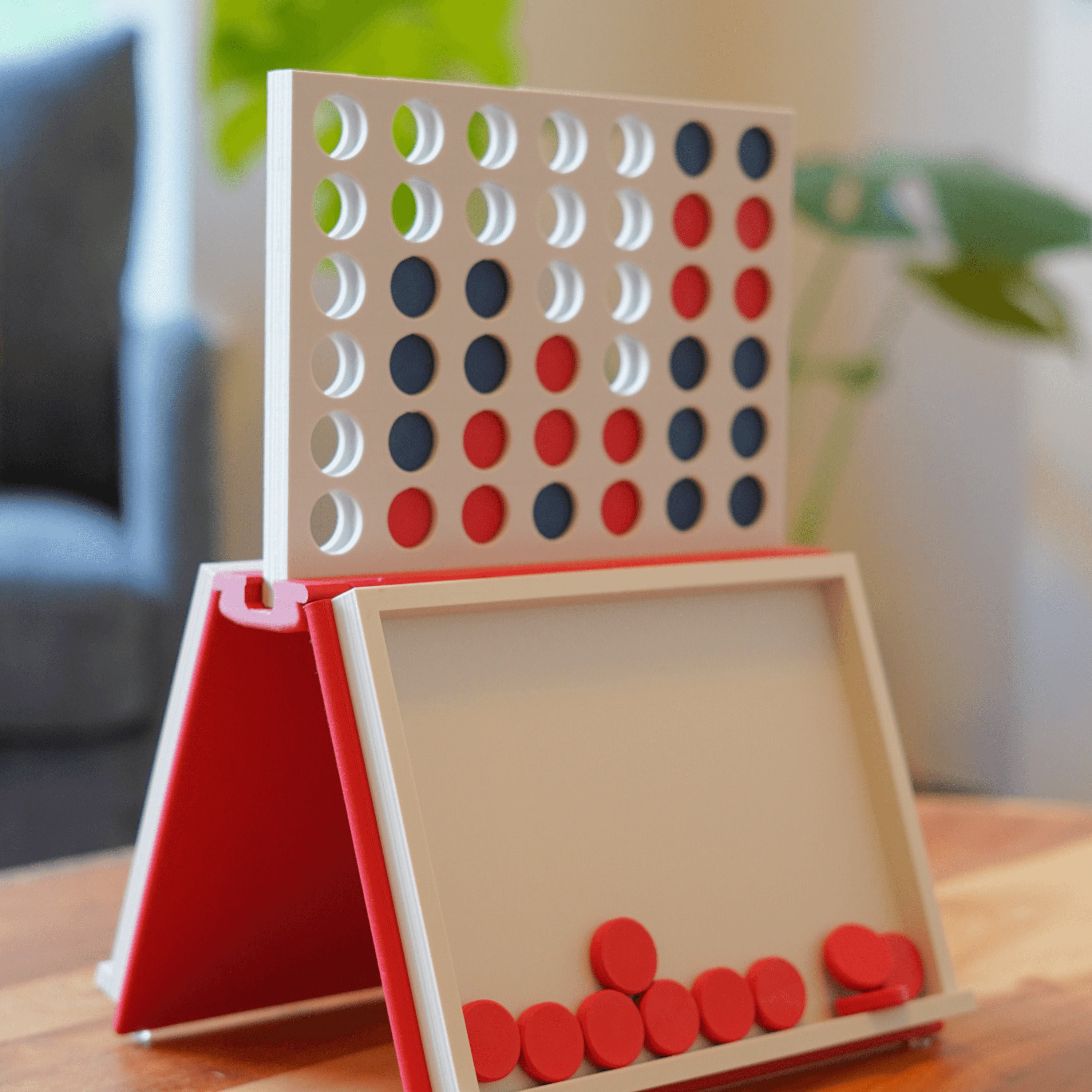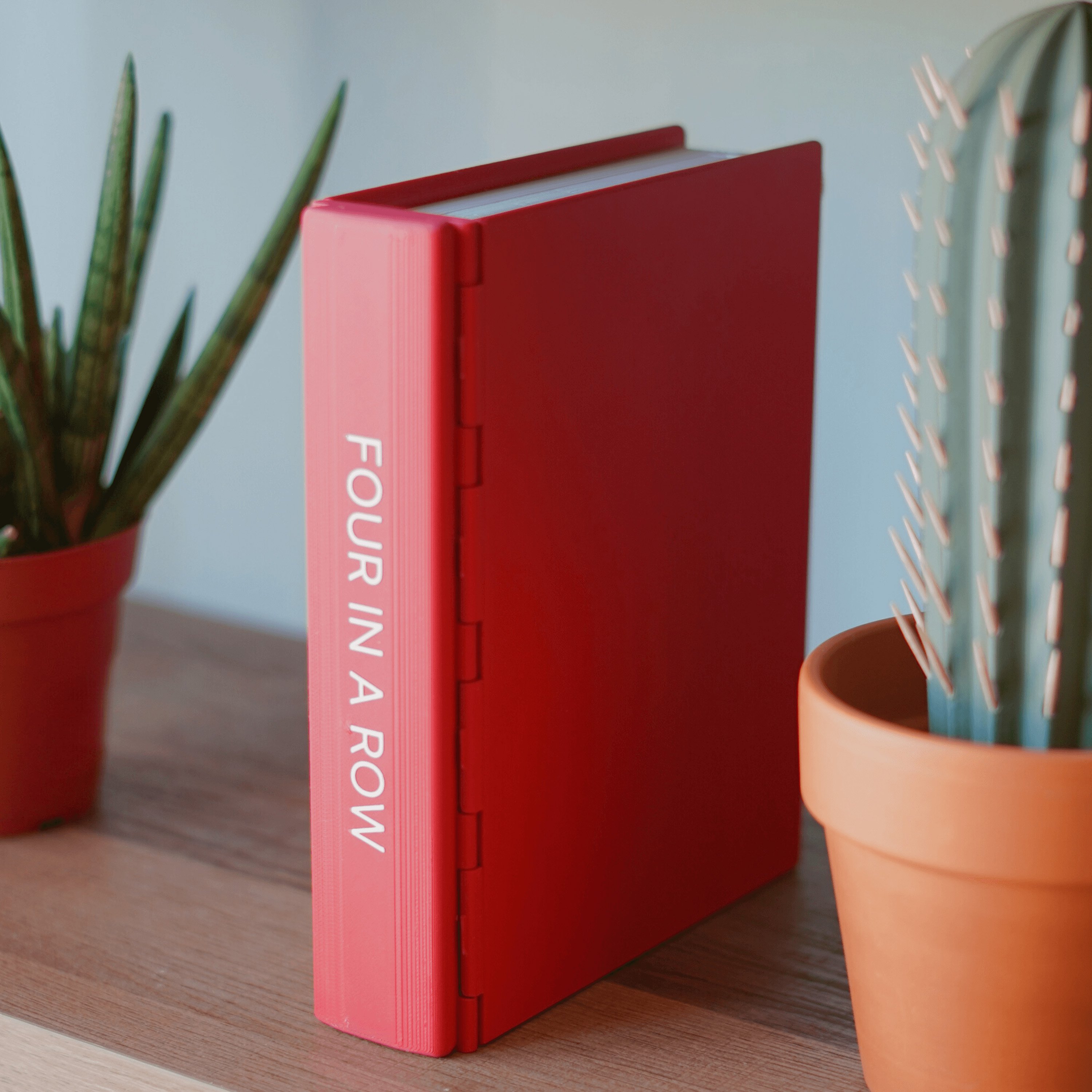 - Four in A Row: Open the book, set up the upright grid, and take turns dropping colored tokens – first to connect 4 in a line wins!